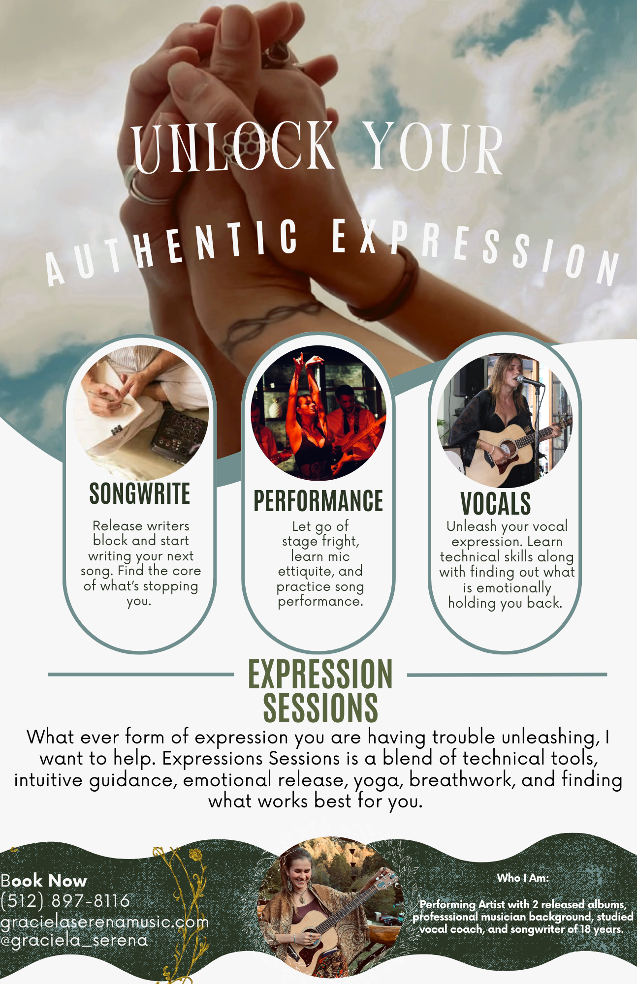 “I worked with Graciela for 10 weeks under her expression session program and it was absolutely life changing. I have been struggling with a writer’s block when it comes to songwriting and I felt like I couldn’t get anywhere in my music if I couldn’t even finish a song. With over a decade of professional music experience, Graciela didn’t just give me basic practical tools and send me on my way, no, she helped me dig into the root of what was hindering my voice, my expression. She offered tools such as kundalini yoga movements, breath work, meditation, raw and honest reflections, journal prompts, and simple trial and error. The container she creates offers the perfect balance of grounded and cosmic practices. She is so validating but also radically honest and not afraid to ask the hard questions. Her presence is powerful and will provide you the space needed to make the necessary shifts towards full authentic expression, if you’re ready. I could say so much about my experience, but I think I want to emphasize that Graciela never pretended to be a miracle worker that could magically fix my writer’s block. She simply showed up for me in FULL presence week after week and reflected back to me the work that needed to be done. She made space for the feelings that deserved to be felt, the words that needed to be said, and eventually the songs that were begging to be sung. Everyone’s process will look different, but I fully believe that Graciela is beyond capable of holding this space for you to step into your full authentic expression. Take👏🏻the👏🏻 leap👏🏻”